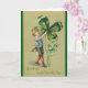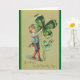 Cute, vintage picture of a lad with shamrocks, is featured on this greeting card for St. Patrick's Day. Front of the card reads, "Greetings on St. Patrick's Day" and inside of the card reads, "A Day for Shamrocks, A Day for wearing Green. May St. Patrick's Day Be full of Irish Blessings for your family and you"! A sweet card to send to family and friends for the Irish holiday!