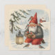 A classic Scandinavian Christmas card featuring a tomte feeding birds in a snowy yard, illuminated by warm lantern light. This soft vintage-style illustration creates a peaceful holiday mood. Full-page design with no text, perfect for sending a calm and nostalgic winter greeting.