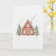 A charming and nostalgic Christmas card featuring a cosy red winter cottage surrounded by snow covered pine trees. Soft vintage colours, gentle snowfall and warm glowing windows give the artwork the comforting feeling of an old fashioned holiday scene. A lovely choice for sending heartfelt Christmas wishes to anyone who appreciates classic festive imagery.