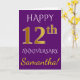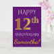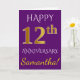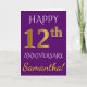 Carte Violet, Faux Or 12e Anniversaire de Mariage + Nom