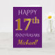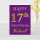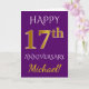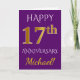 Carte Violet, Or Faux 17e Anniversaire de Mariage + Nom