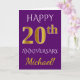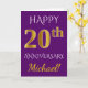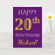 Carte Violet, Or Faux 20e Anniversaire de Mariage + Nom