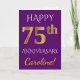 Carte Violet, Or Faux 75e Anniversaire de Mariage + Nom