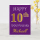 Cette carte de vœux d'anniversaire de mariage simple et personnalisée comporte le message "Joyeux 10e Anniversaire de Mariage", le "10e" ayant une apparence dorée imitation. La couverture comporte également un nom personnalisé et un fond violet. L'intérieur comporte un message de vœux d'anniversaire de mariage personnalisé. Cela pourrait être offert à un mari ou une femme pour célébrer le dixième anniversaire de mariage du couple. [~Z0000089]
