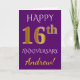 Carte Violet, Or Imitation 16e Anniversaire de Mariage +