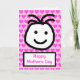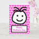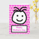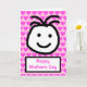 Dessin animé mignon d'un grand visage souriant avec les mots 'Joyeuse Fête des Mères'. La carte a un fond rose avec des cœurs. Personnalisez facilement cette carte en modifiant le texte du modèle sur le devant et à l'intérieur. Merci de regarder mes créations !