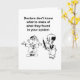 Les médecins sont choqués par ce qu'ils ont trouvé dans votre système, lit-on sur cette drôle de carte de prompt rétablissement, qui présente un dessin comique de deux médecins perplexes discutant du dossier du patient. L'intérieur sauve avec humour le lecteur de l'implication comique de problèmes médicaux en capitalisant sur l'amour du destinataire pour le chocolat. La carte est conçue pour une meilleure amie ou un meilleur ami, un membre de la famille, un collègue de travail ou quiconque se remet d'un problème de santé nécessitant un séjour à l'hôpital ou quelques visites chez un médecin. Dans tous les cas, il ou elle se délectera des mots « Ils ont trouvé des choses normales. Ils s'attendaient à ne trouver que du chocolat. » Idéal pour un(e) amoureux(se) de chocolat qui se rétablit.