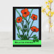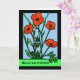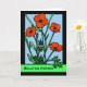 Carte de voeux Anniversaire avec illustration de pavots rouges dans un cadre noir. L'illustration ressemble à du vitrail avec les contours noirs. Pavot rouge vif aux tiges vert foncé et feuilles. Arrière - plan du ciel bleu clair. Elément de pavot avec l'aimable autorisation de Openclipart. Copyright © Shoaff Ballanger Studios.