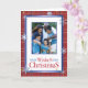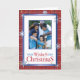 Envoyez vos vœux de Noël avec cette carte photo élégante pliée. Elle présente des flocons de neige qui tombent, des bordures de fête rouges et bleues. Personnalisez en ajoutant votre photo, vos noms, votre année et votre message.