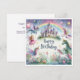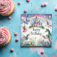 Envoyez des vœux d'anniversaire enchanteurs avec cette carte fantaisiste ! Avec un château majestueux sous un arc-en-ciel, entouré de licornes gracieuses, d'un dragon amical et d'une fée scintillante, c'est parfait pour quiconque rêve de magie et d'émerveillement le jour de son anniversaire.