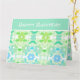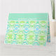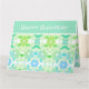 Carte de voeux papier plié à motifs floraux adorables, présentée ici comme joyeux anniversaire, texte à l'intérieur et à l'extérieur peut être commuté pour convenir à toute occasion, couleur arrière - plan vert doux ainsi que bande blanche peut être changée à n'importe quelle couleur. Les couleurs sont bleues, vertes, citron vert et turquoises.