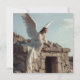 Carte de vœux de Résurrection de Pâques, avec un ange assis sur la pierre tombale. Le ciel autour est plein de lumière.