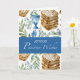 Ce magnifique design de Pâque présente une illustration de style aquarelle de matzah empilés, une coupe de vin traditionnelle (coupe de kiddouch) et de délicates fleurs bleues entrelacées avec des branches, le tout sur un fond doux et apaisant. La barre bleue élégante sur le design met en valeur le message "Vœux de joyeuse Pâque". Ce design attentionné et festif capture l'esprit de la fête, ce qui en fait un moyen idéal pour envoyer des bénédictions et célébrer la joie, la paix et la convivialité de la Pâque avec les proches.