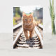 Chat de gingembre tabby marchant sur les rails. Tout le texte peut être modifié.