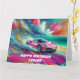 Carte Voiture de sport rose vibrante sur une plage tropi