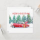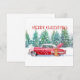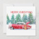 Voici une carte de vœux de Noël cool pour ceux qui aiment les automobiles anciennes. Une carte rouge vintage et un traîneau dans un paysage enneigé.