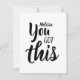 Cartes imprimées ou numériques téléchargeables. Vous Avez Ce Devis Black Personnalisé Nom Carte Plat. "Vous avez compris" avec le nom personnalisé du bénéficiaire chanceux. Qui connaissez-vous qui a besoin d'une dose d'inspiration et d'encouragement, et de confirmation de leurs capacités stupéfiantes ? Offrez-leur ce message de confiance en soi avec ce design contemporain et minimaliste de la typographie noire, rappelant avec élégance et audace à votre personne spéciale, "Vous avez ceci." Placez-vous sur un arrière - plan blanc sur cette carte de voeux plate, personnalisez facilement le design avec votre nom désiré en cliquant sur le bouton Personnaliser. 2020 © Kris Harty Inspiration pas à pas