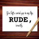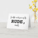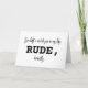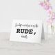Il est difficile de regretter quelqu'un. Surtout quand son absence est tout simplement impolie. Cette carte minimaliste dit ce que vous pensez vraiment - avec un « IMPOLI » en gras pour l'impact et un murmure de « franchement » pour cette vérité émotionnelle. Une façon moderne de dire « Tu me manques », avec un clin d'œil.
