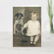 Écrivez votre propre message sur cette carte avec un enfant en bas âge se tenant sur la jambe du chien de famille