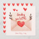 Carte de vœux de la Saint-Valentin représentant une enveloppe à l'aquarelle mignonne avec un jeu de mots "sending you love" sur le devant et un motif de cœurs rouges au verso. Découvrez notre magasin pour plus d'articles de cette collection.