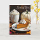 Carte de voeux thématique de Pretty Fall disant, "Envoi de bénédictions d'automne" pour un ami ou un membre de la famille. Illustration de la scène de l'automne délicieuse avec un morceau de tarte citrouille et de crème fouettée sur une assiette vintage fantaisie, une tasse de cacao chaud à la crème fouettée et un citrouille blanc entouré de bâtons de cannelle et de tranches d'orange séchée.