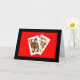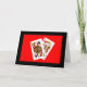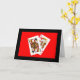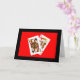 Une photographie d'une Reine de Trèfle et d'un Roi de Cœur qui se regardent est le point central de ma carte d'anniversaire "Vous deux étiez faits pour être ensemble - C'est dans les cartes". Les cartes ressortent joliment sur un fond rouge vif avec une bordure noire.