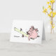 Un cochon solitaire de dessin animé assis sur une balançoire sans personne avec qui jouer. Cette carte postale imprimée avec la légende, "Missing you". serait super d'envoyer cette personne spéciale pour lui dire combien ils ont manqué.