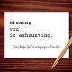 Si quelqu'un manque de quelqu'un draine plus d'énergie qu'une mauvaise semaine de travail, cette carte l'obtient. Avec un agencement épuré et minimaliste et un esprit sec, il atteint l'équilibre parfait entre sarcasme et sincérité. Qu'il s'agisse d'un ami de longue distance ou d'un simple personnage qui vous a dépeint pendant trop longtemps, cette carte vous délivre un rire... et un coup de pouce pas si subtil.