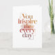 Un design de typographie simple et sincère qui exprime une appréciation et une admiration quotidiennes. Avec un style moderne et épuré et des couleurs douces, ce design délivre un message chaleureux et significatif parfait pour les enseignants qui inspirent chaque jour. Idéal pour les cadeaux d'appréciation, les cartes de remerciement ou les souvenirs attentionnés.