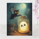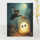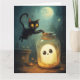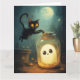 Scène d'Halloween avec fantôme et chat noir.