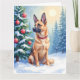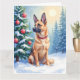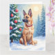 Share festive holiday cheer with this beautiful Christmas card featuring an attentive Belgian Malinois beside a decorated evergreen tree. Painted in a soft watercolor style with gentle snow and warm winter lighting, this design adds seasonal charm perfect for dog lovers. The blank interior allows you to add a personal greeting, making it ideal for gifting, holiday mail, and breed-themed stationery collections.