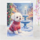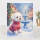 Carte Watercolor Bichon Frise Festive Fountain Christmas