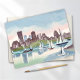 Carte Watercolor Boston Harbour Massachusetts