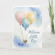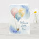 A sweet and charming watercolor card for baby showers or new baby greetings. Features gentle pastel hot air balloons and the text 'Welcome Little One'. Perfect gender-neutral card.