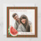 Celebrate your sweet love with this adorable Valentine's Day card featuring a vibrant watermelon slice and a cute pun. The playful message, 'Together, we're one in a melon!' is perfect for expressing your affection. This card is designed to showcase your favorite photo, making it a truly personal and cherished keepsake. The charming red and green stripe border adds a festive touch, while the handwritten 'Love you always' completes the heartfelt sentiment. It's the perfect way to send a smile and a sweet message to your significant other.