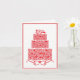 Wedding greeting card is shown with a fancy red cake graphic print.