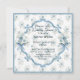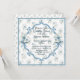A beautiful wedding shower invitation in blue floral, surrounded by a circular and square frame on the front.