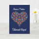 Carte de jour des grands-parents avec "Joyeux Grand-parents Day" en gallois et un motif floral en forme de coeur sur un arrière - plan bleu profond, inspiré de l'art populaire d'Europe de l'Est. D'un collage de papier peint à la main par Judy Adamson, une partie de la collection Posh & Painterly 'Folk Heart'.