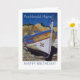 Une carte d'anniversaire avec l'accueil en gallois et en anglais et un bateau de pêche portugais sur une plage, d'une douce peinture pastel de Judy Adamson.