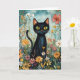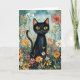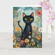 Carte Whimsical Black Cat avec illustration Fleur sauvag