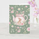 Carte Whimsical Bunny Green Teapot Floral Easter
