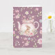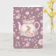 Carte Whimsical Bunny Pink Teapot Floral Easter