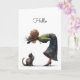 Carte Whimsical Cute Chat et dame Bonjour Salutation