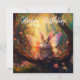 Un lapin fantaisiste aux ailes de fées colorées se trouve sur une branche dans une forêt enchantée, entouré de lumière brillante et de feuilles en chute. L'atmosphère magique et vibrante vous plonge dans une aventure fantastique. Joyeux anniversaire dans le texte décoratif fleur sauvage