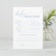 Présentez notre carte de prédictions de baby shower bleu poussiéreux, parfait pour votre simple fête de printemps ou d'hiver boho moderne! Cette carte possède une ambiance boho-chic avec une calligraphie élégante et un design minimaliste bleu-sur-blanc, ce qui la rend idéale pour les garçons. De plus, il est modifiable, de sorte que vous pouvez ajouter votre propre touche chic et fantaisiste pour créer un design vraiment beau et délicat. N'hésitez pas à nous contacter pour toute question concernant la conception du produit ; nous sommes heureux de vous aider !