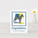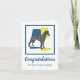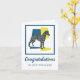 Whippet / Italien Greyhound chien silhouette en bleu jaune et noir lignes de grille moderne motif. Félicitations pour votre nouveau chiot à l'extérieur et le message drôle à l'intérieur peut être changé à tout ce que vous voulez.