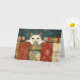 Carte White Cat Peeking over Christmas Gifts Greeting