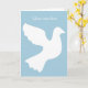 White dove greeting card with custom message. Add your own inspirational text on the front and inside. Customizable background color. ie light blue. Peaceful pigeon / dove bird silhouette design with stylish typography. Sympathy theme, death, condolences, in loving memory of, religious, care and concern, peace, blessings, faith etc.