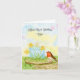 This spring-themed birthday card features a daffodil-inspired birthday cake, the flower of March, with a robin perched on a wooden cake stand, creating a cheerful and meaningful design for a wife's birthday.