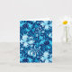 Carte dans un vintage imprimé floral William Morris de lys stylisés et d'Irises, numériquement rehaussés et colorés, dans les tons bleu ciel et blanc sur un arrière - plan bleu indigo foncé, numériquement coloré et rehaussé